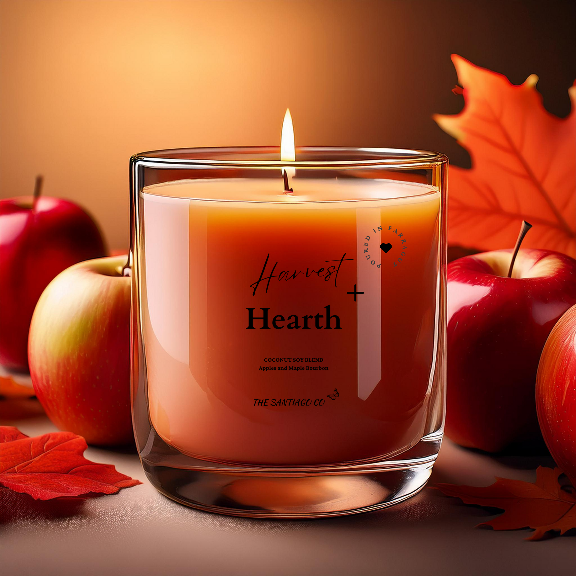 Warm, inviting, and full of autumn charm — our Harvest & Hearth candle combines the sweet, crisp scent of ripe apples with the rich, smoky essence of maple bourbon. This comforting fragrance creates the perfect fall atmosphere, evoking cozy evenings by the fire, where the warmth of spices and the sweetness of caramelized apples mingle in the air.